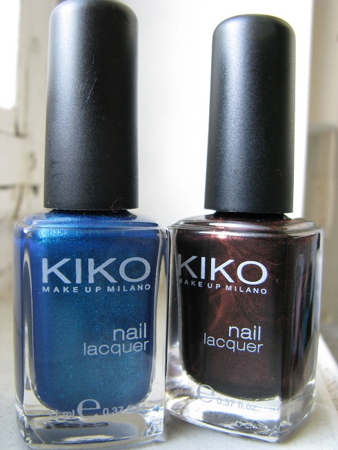 | Und schließlich: Im Ausverkauf am Samstag bei Kiko ergattert, je 1,50€ links: 300 Pearly Malachite Green (Meerjungfrauenblau-grün) rechts: 374 Pearly Chocolate Noir (flüssige Schokolade *_*) |