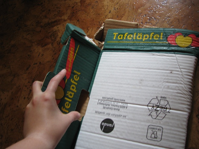 | Karton zusammengefaltet. Die riesige doofe, hässliche Kiste zusammengestaucht und weggeschmissen. |