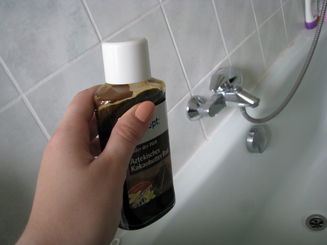 Genau das gleiche Kakaobad hab ich auch zu Hause! Und gucks seit letztem Winter an und benutz es nicht weils kein Schaumbad ist – und wenn ich denn dann mal bade will ich auch vernünftig Schaum haben XD
