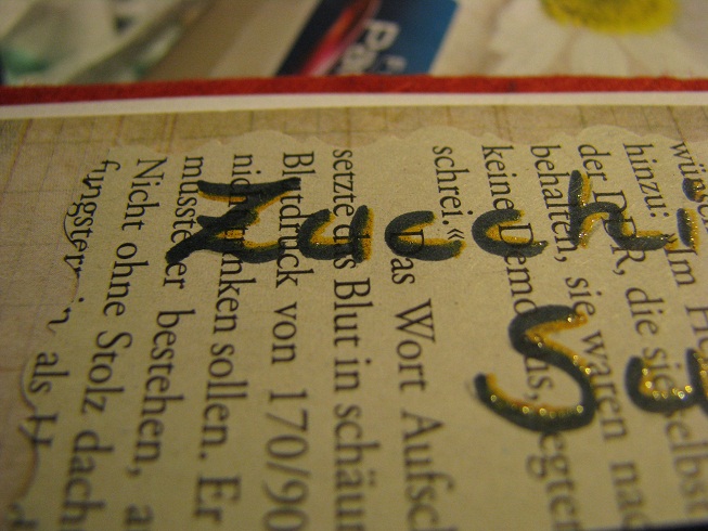 Schrift mit noch etwas goldglitzer Gelstift verziert ^^;
