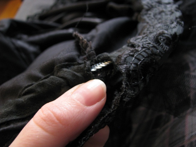 | Einen Reifrock repariert. Die Enden des Metallringes waren herausgekrochen – diese sind nun wieder schön zusammengeklebt im Petti verschwunden ^^ |