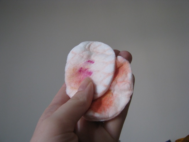 Wattepads eingefärbt.