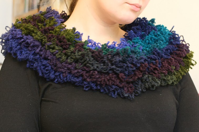Ich habe euch doch letzte Woche den Anfang meiner neuen Wollspielsache gezeigt: den gestrickten Flausch-Loop. Dieser ist im Laufe der letzten Tage fleißig gewachsen, groß und stark geworden und irgendwann beschloss ich dann, dass er fertig ist. Das war Dienstag.