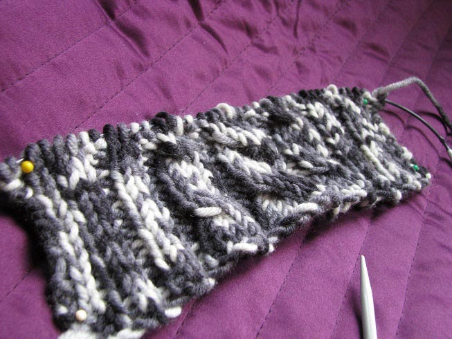 Aufmachen musste ich, weil ich das Zopfen ohne Hilfsnadeln verhauen hatte – jetzt mit Hilfsnadel klappt aber alles prima ^^