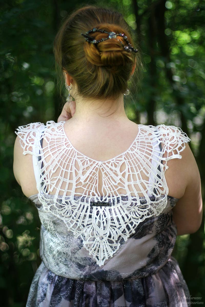 Mehr Infos zu dem wunderschönen Kleid – und auch noch einige Bilder mehr ^^ – gibt es heute übrigens auch bei Iv im Blog. Schaut unbedingt vorbei, es lohnt sich 😀 Denn schon allein dieser Spitzenkragen ist großartig – und bildet hinten übrigens auch noch mal einen tollen Hingucker 😉