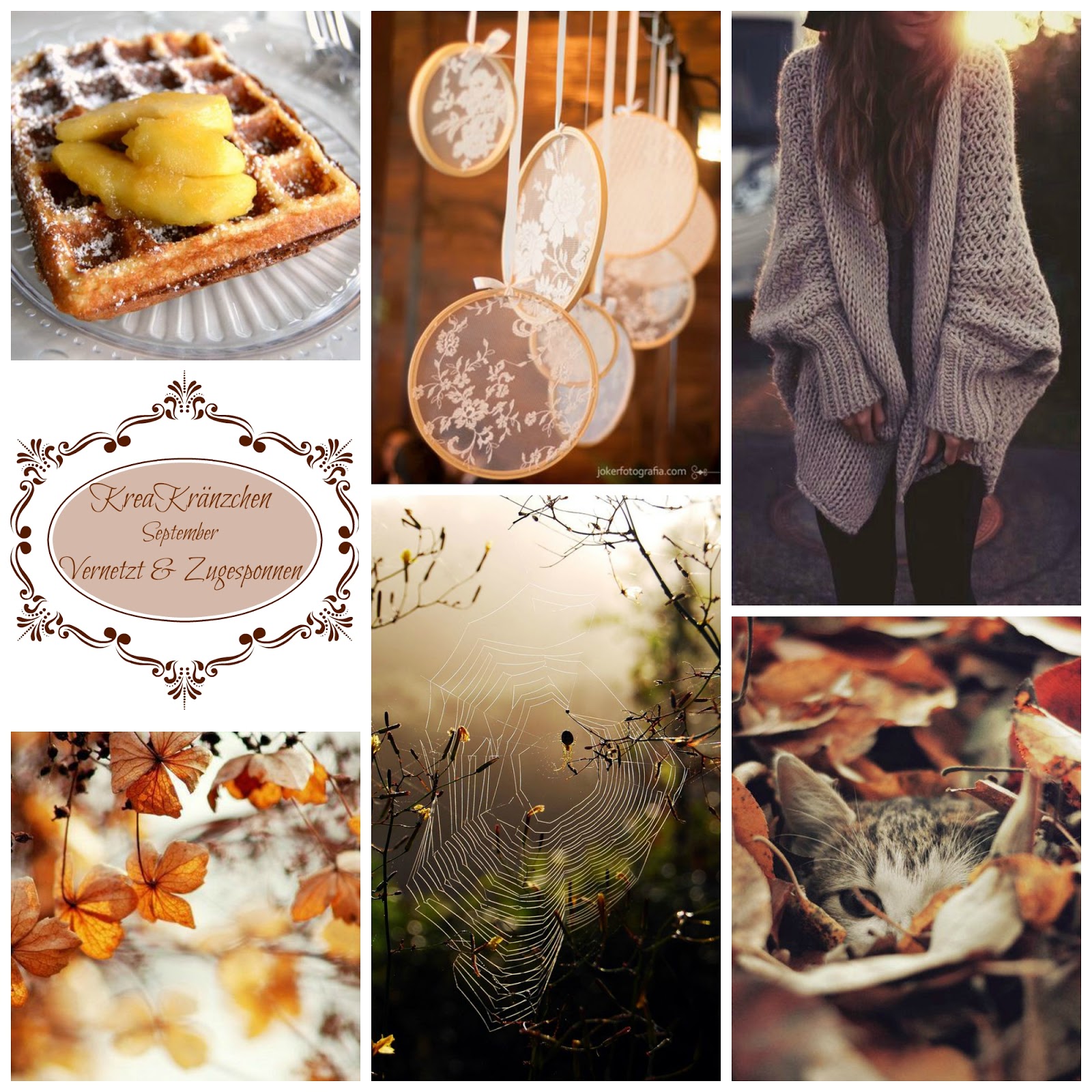 „Vernetzt und Zugesponnen“ fand ich als Thema ja sehr schön – dazu kam mir gleich irgendwas wolliges bis spitziges in den Sinn. Oder so schöne Fotos mit Tautropfen in Spinnennetzen… Hach, so viele Möglichkeiten. Bei wem sich jetzt aber so spontan doch noch nix entspinnt, der sollte auf jeden Fall bei Jens Moodboard einen Zwischenstopp einlegen. Da wird eure Kreativität sicherlich ordentlich angekurbelt und ihr findet einen roten Faden 😉